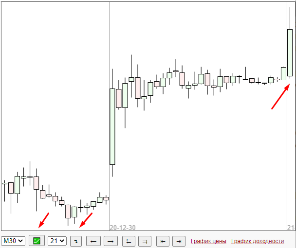 Выберите необходимый таймфрейм из выпадающего списка, нажмите на кнопку справа.
