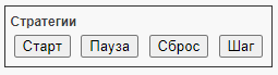 Для начала процесса тестирования необходимо в блоке "Стратегии" нажать на кнонку "Старт". При необходимости можно остановить процесс кнопкой "Пауза", для возобновления процесса нажмите кнопку "Старт".